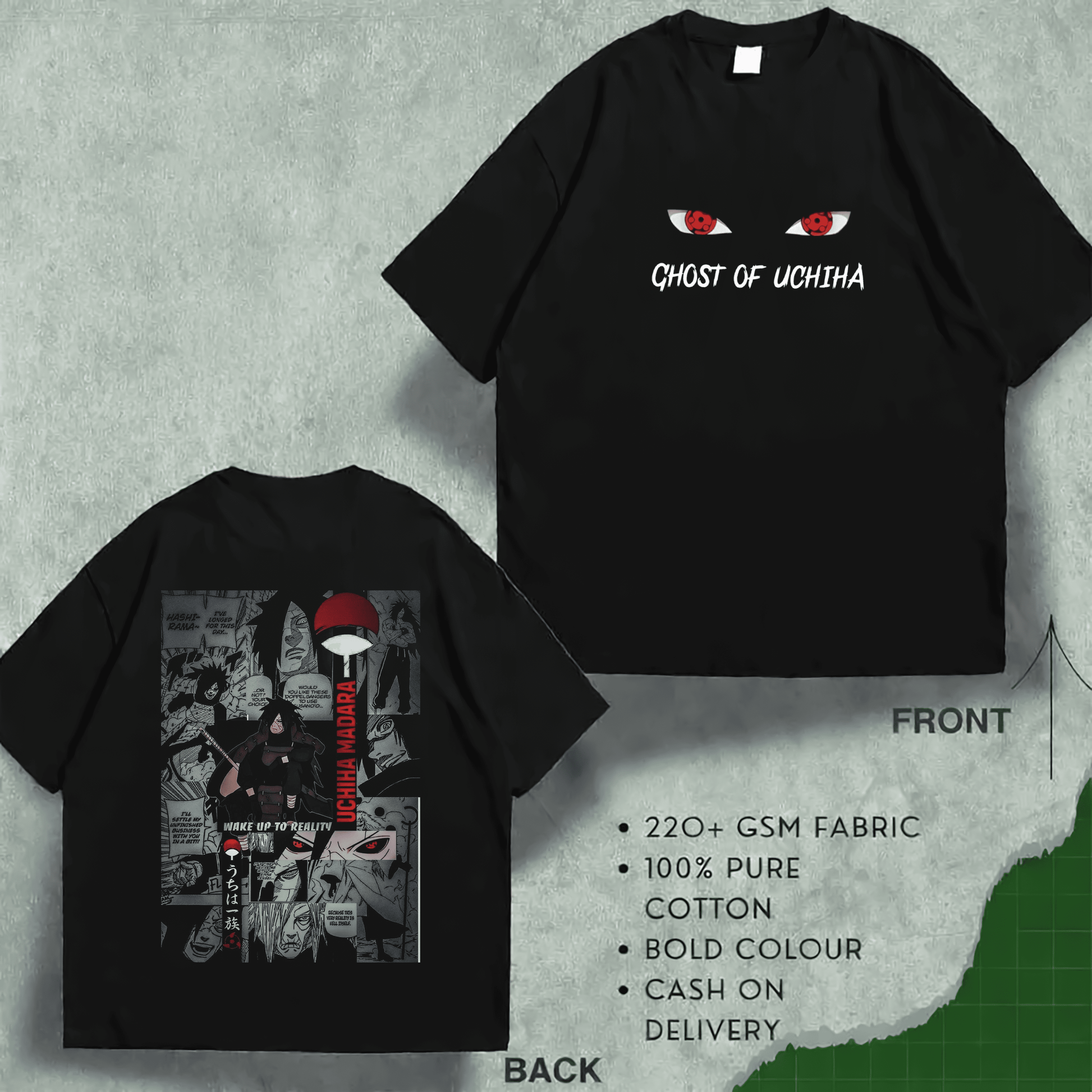 অত্যাশ্চর্য DTF প্রিন্ট সহ প্রিমিয়াম মানের ঘোস্ট অফ উচিয়া ড্রপ শোল্ডার